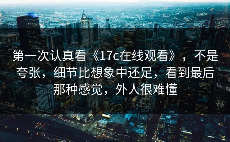 第一次认真看《17c在线观看》,不是夸张,细节比想象中还足,看到最后那种感觉,外人很难懂